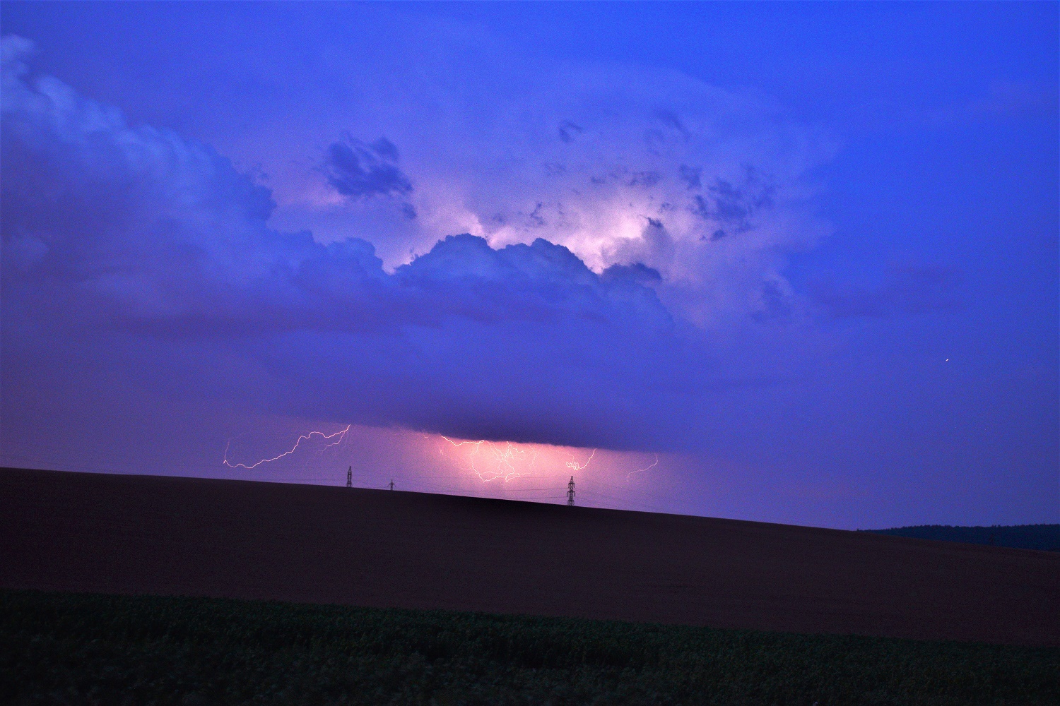 Noční vzdálené bouřky východně od Prahy - 23.4.2018