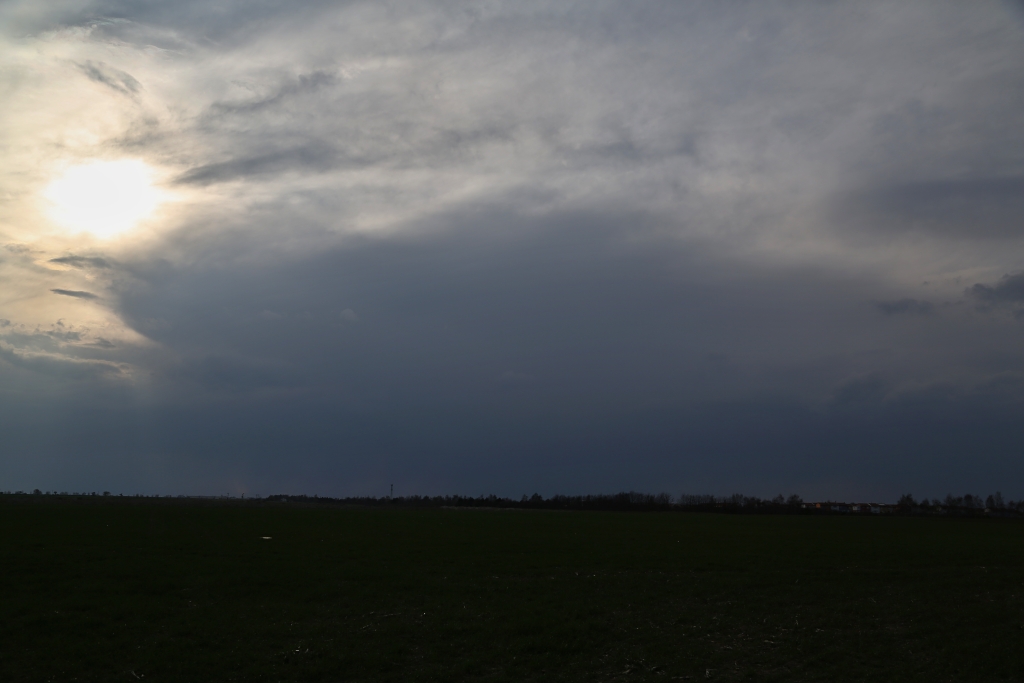 Po příjezdu do blízkosti buňky srážkové pruhy krásně zbarvovaly paprsky Slunce, již nízko ležícího nad obzorem. Stále však neztrácela na síle, ba naopak každou chvíli vyprodukovala nějaký ten microburst či downburst.