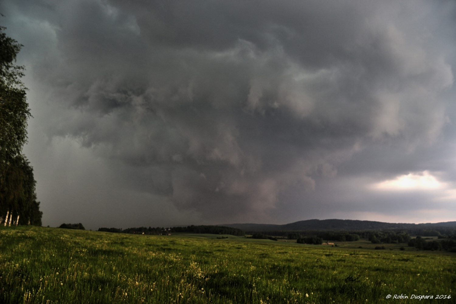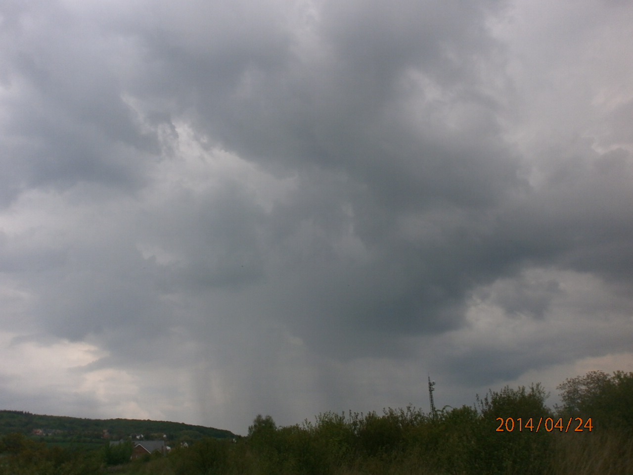 postup od západu na východ z oblasti jižního Písecka, místo pozorování zasáhl jen okraj, malé krupky + déšť, v centru padaly větší kroupy a silný vítr lámal stromy
